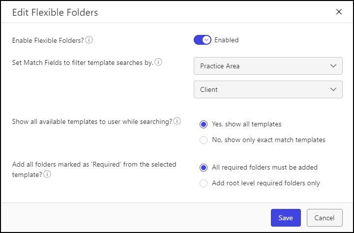 Add all folders marked as ‘Required’ from the selected template | When adding folders from a template, should all required folders be added as well? | |
