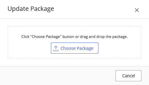 Selecione Escolher Pacote, navegue até o diretório local, selecione o pacote, depois clique em OK. O assistente Atualizar pacote é aberto.