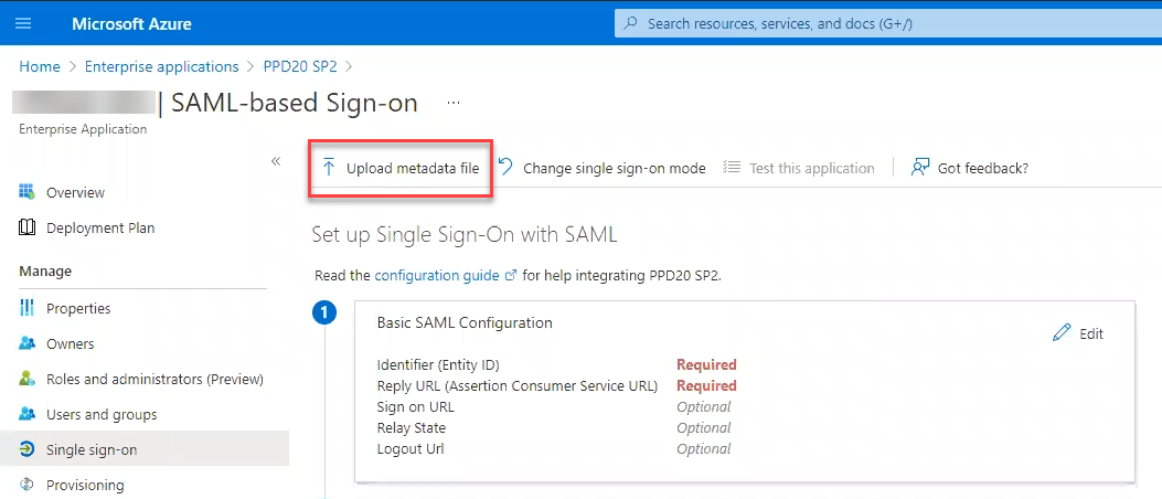 As etapas a seguir descrevem como configurar o SSO SAML no Azure Active Directory (AD). Para obter mais informações, consultehttps://docs.microsoft.com/en-us/azure/active-directory/hybrid/how-to-connect-sso
