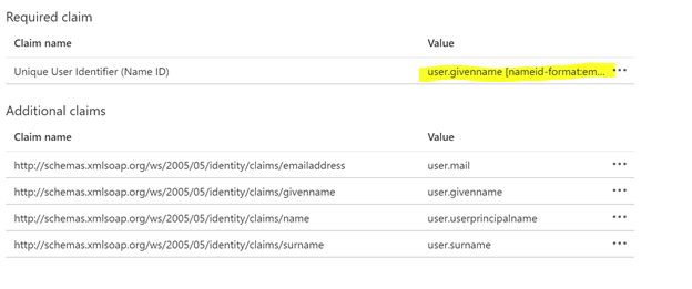 - Confirme se o Atributo de Origem da reivindicação de ID de Nome está configurado corretamente no Azure, conforme descrito na etapa 13 acima.