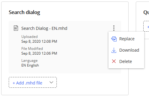 - Para o diálogo específico que você quer atualizar, selecione +Adicionar arquivo .mhd.