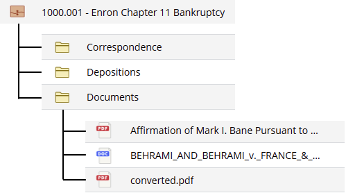 Uma pasta de documento pode armazenar pastas e documentos e os e-mails. Pastas podem ser criadas nos espaços de trabalhos, guias, ou outras pastas. Uma pasta criada diretamente dentro de um espaço de trabalho é chamado de uma pasta de nível superior. Como melhores práticas, o iManage recomenda em usar o menos de pastas de nível superior possíveis para organizar melhor as informações.
