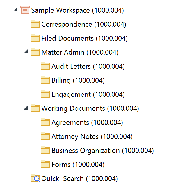 Esta seção explica a criação de pastas flexíveis usando-se um modelo de amostra em clientes iManage Work. As pastas no modelo de amostra estão configuradas da seguinte maneira: