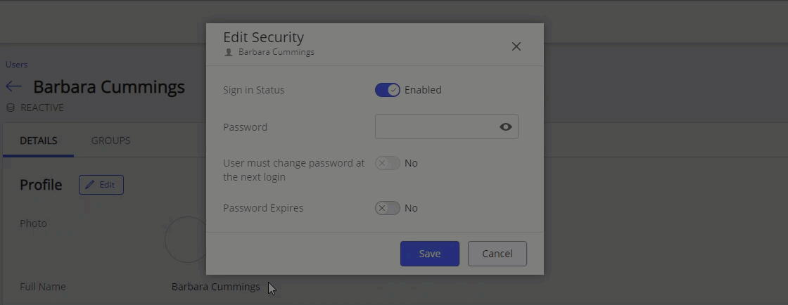 Os administradores podem ver esses requisitos quando criam uma senha para um novo usuário ou quando alteram uma senha de um usuário existente.