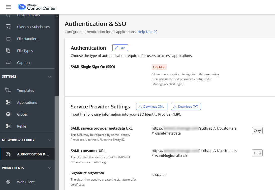 Navegar até iManage Control Center > Global.