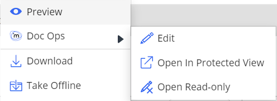 O iManage Control Center agora permite criar submenus dentro dos menus de contexto do iManage Work. Isso permite agrupar e organizar as ações do menu para atender às necessidades dos usuários.
