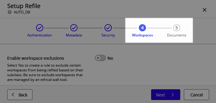 Para obter a mesma funcionalidade fornecida na caixa de diálogo anterior, um administrador do iManage Work deve executar as seguintes etapas: