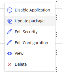 Em qualquer aplicativo existente que foi carregado usando um pacote, a nova opção de menu Atualizar pacote agora está disponível.
