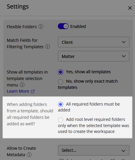 A caixa de diálogo Novo Espaço de Trabalho atualizada introduzida no iManage Work 10.3.2 exibe Nenhum resultado encontrado quando um usuário tenta criar um valor de metadados personalizado durante a criação do espaço de trabalho.