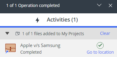 Selecting Go to location directs you to My Favorites/My Matters or the destination category inside them containing the new workspace shortcut.