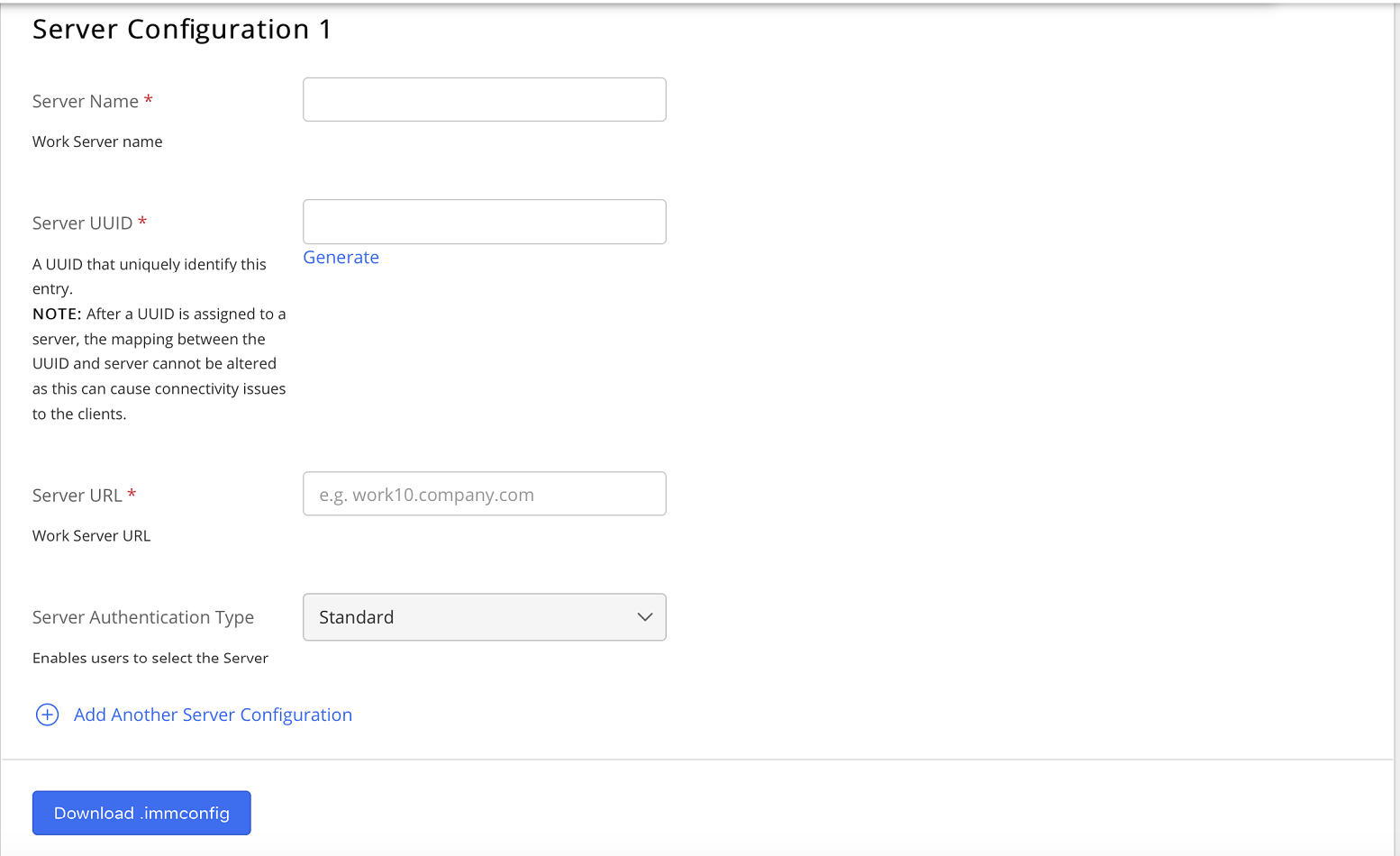 Select this option if you want to add another server configuration details. This is useful when users need to sign in to multiple different iManage Work environments using the iManage Work 10 Mobility app.
