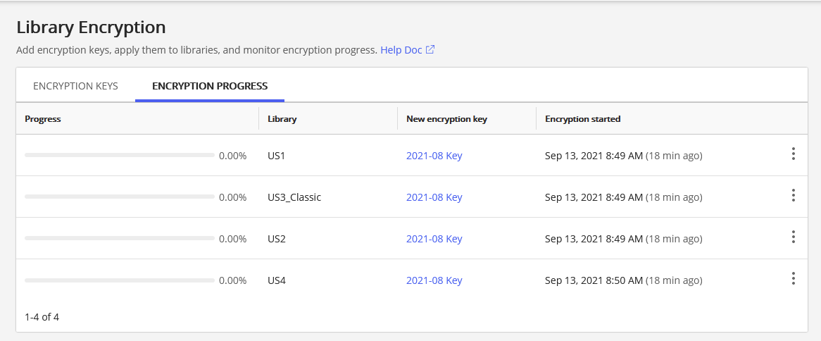 After a key is applied to a library, the encryption progress is updated approximately every hour.