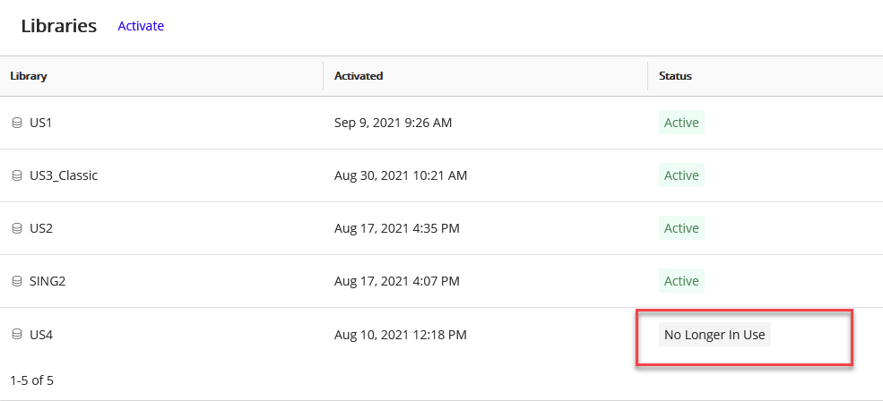 - No longer in use: All content previously using this library key has been re-keyed using a new primary key.