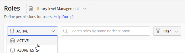 iManage Control Center enables you to create and manage roles globally (across all libraries), or per library. The Roles menu enables you to select the following options: