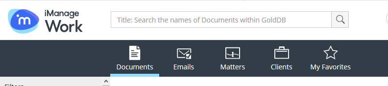 Default tab on Login | Select which tab is loaded when users sign in to iManage Work. If not set, the Documents tab is displayed by default. Users can overwrite this preference and set their Web Default Tab in their User Settings. Figure: Default tab displayed on login