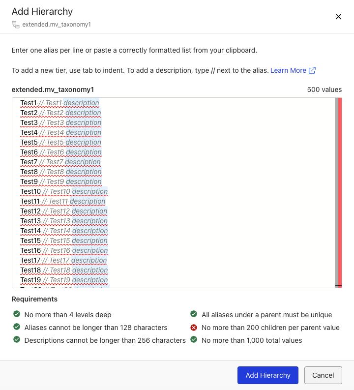 You can also copy values from another application or document and paste them into the editor.Select Add Hierarchy.
