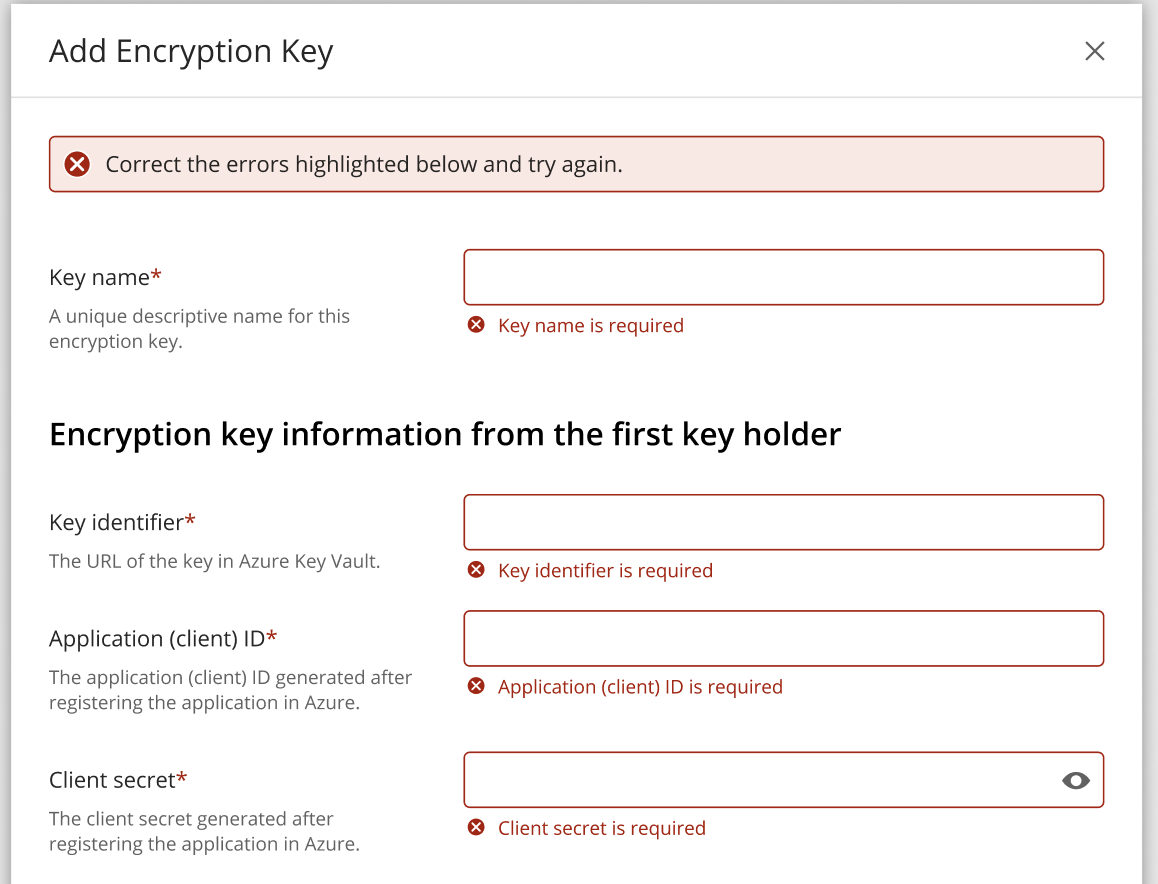 These error messages apply to the Add Encryption Key and Edit Encryption Key dialog boxes.
