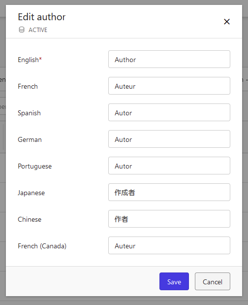 Enter your captions in each respective language, then select Save.