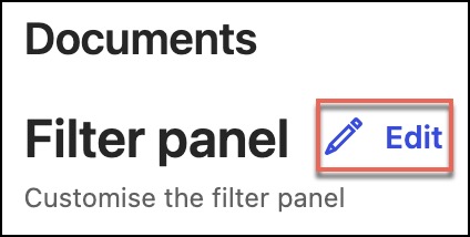 For the selected tab, you can view the list of configured filters. If you're configuring the filters for the very first time, you won't find any filters listed on the page. To configure filters for this tab, select Edit next to Filter panel.