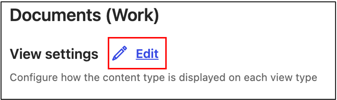 To go to the Edit: <Content type Name> - View settings page, select Edit next to View settings.