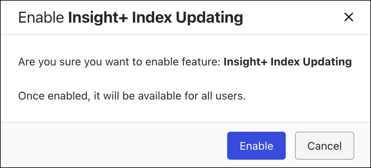 Figure: Enable Feature optionIn the Enable Insight+ Index Updating dialog, select Enable.