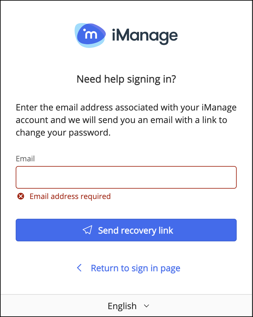 Figure: Forgot password linkEnter the email address associated with your iManage account.