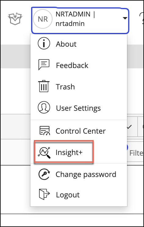 To display the Insight+ option in the user menu in your iManage Work at cloudimanage.com application, the administrator for your organization has to enable this feature. Selecting this option will take you directly into iManage Insight+ without having to re-enter your sign-in details.