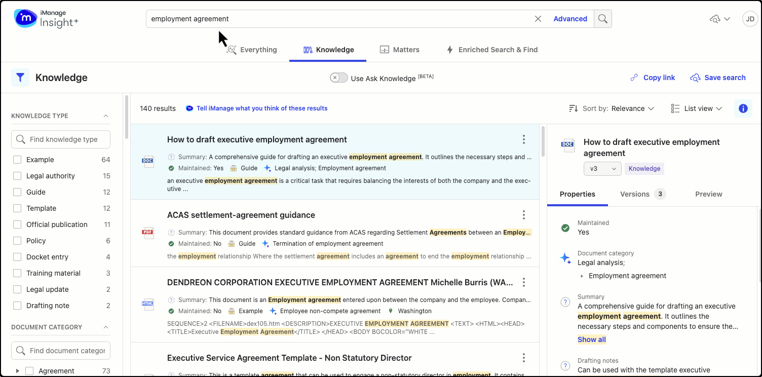 With this release of iManage Insight+, we've introduced additional highlighting for matches found in Comments and Drafting Notes in documents, making it easier to find what you're looking for.