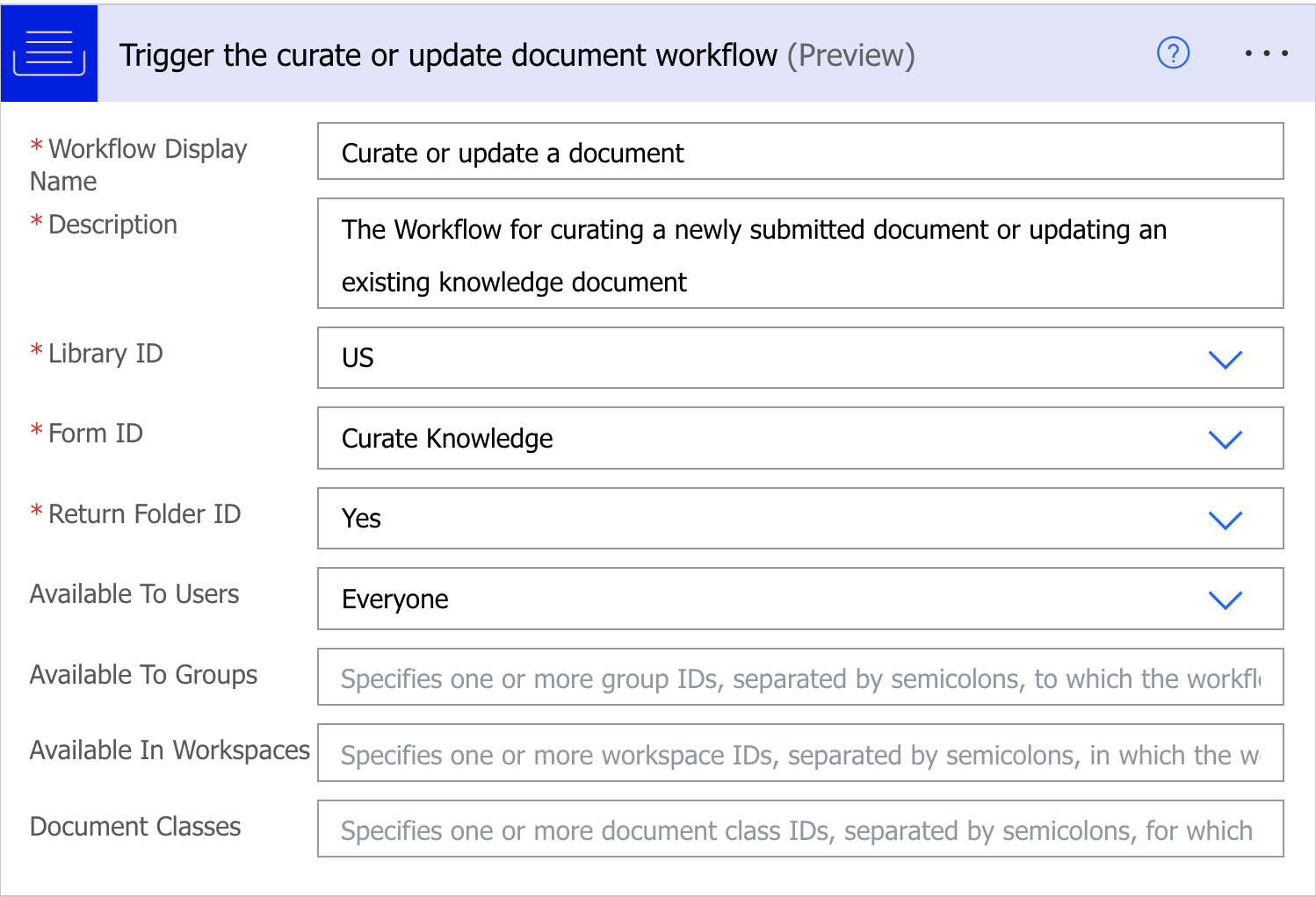 Library ID: Specify the Knowledge library ID where the workflow must be available.