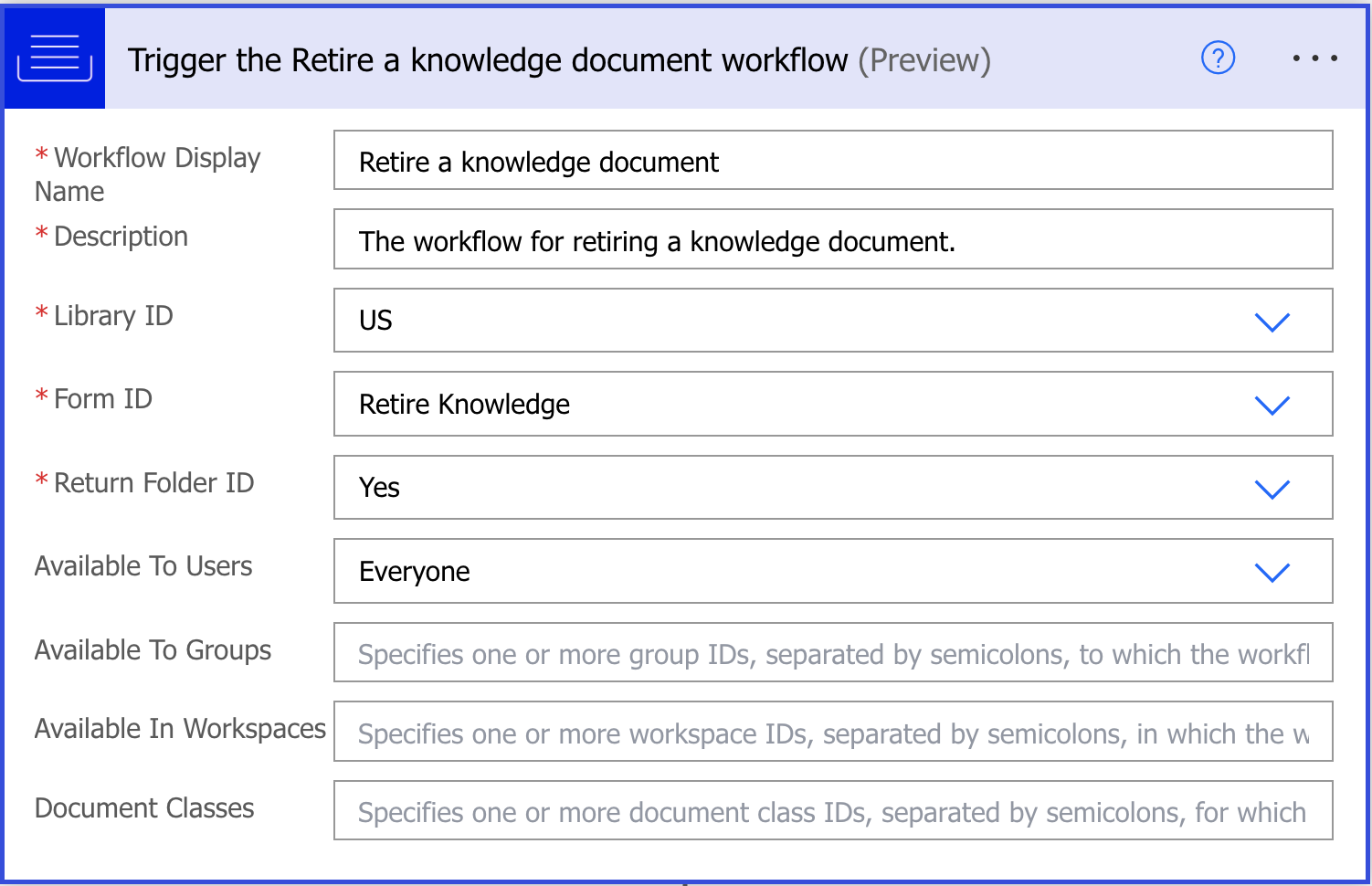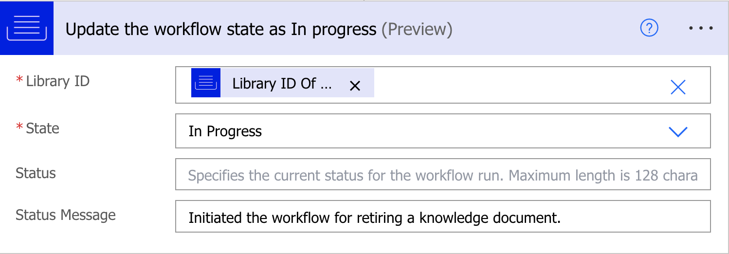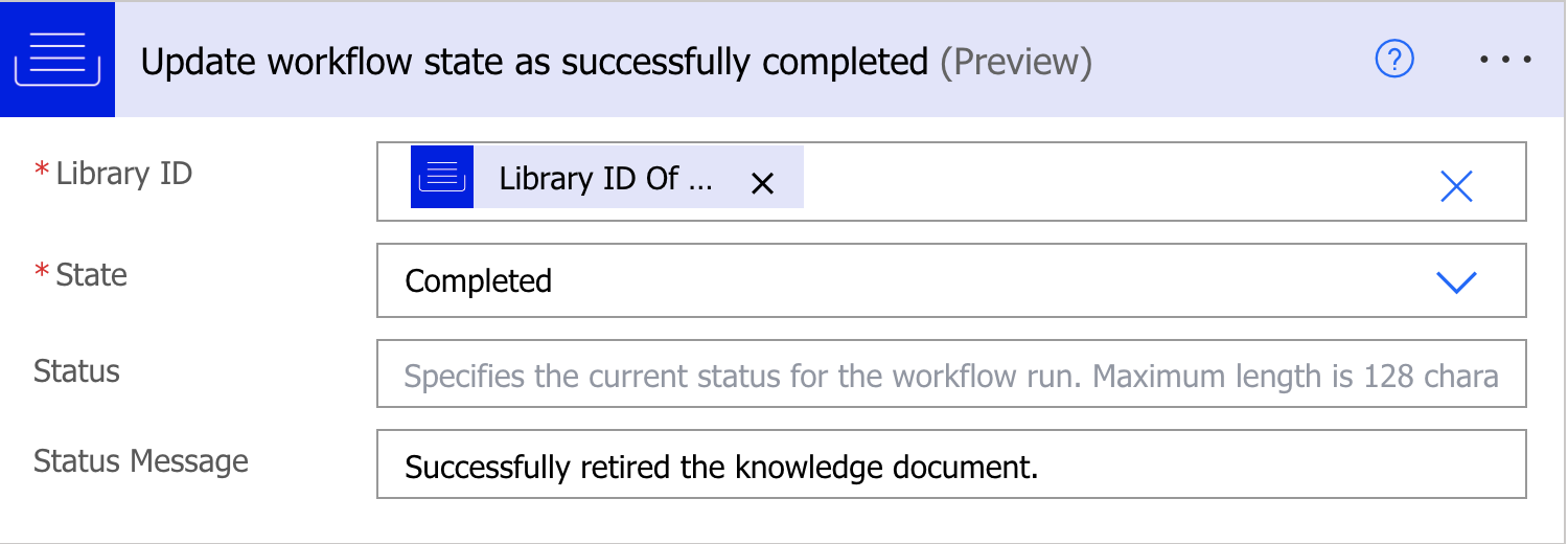 Library ID: Specify the Knowledge library ID where the workflow must be available.