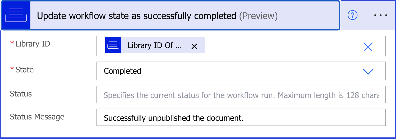iManage Work connector Description: Update workflow state as successfully completed |
