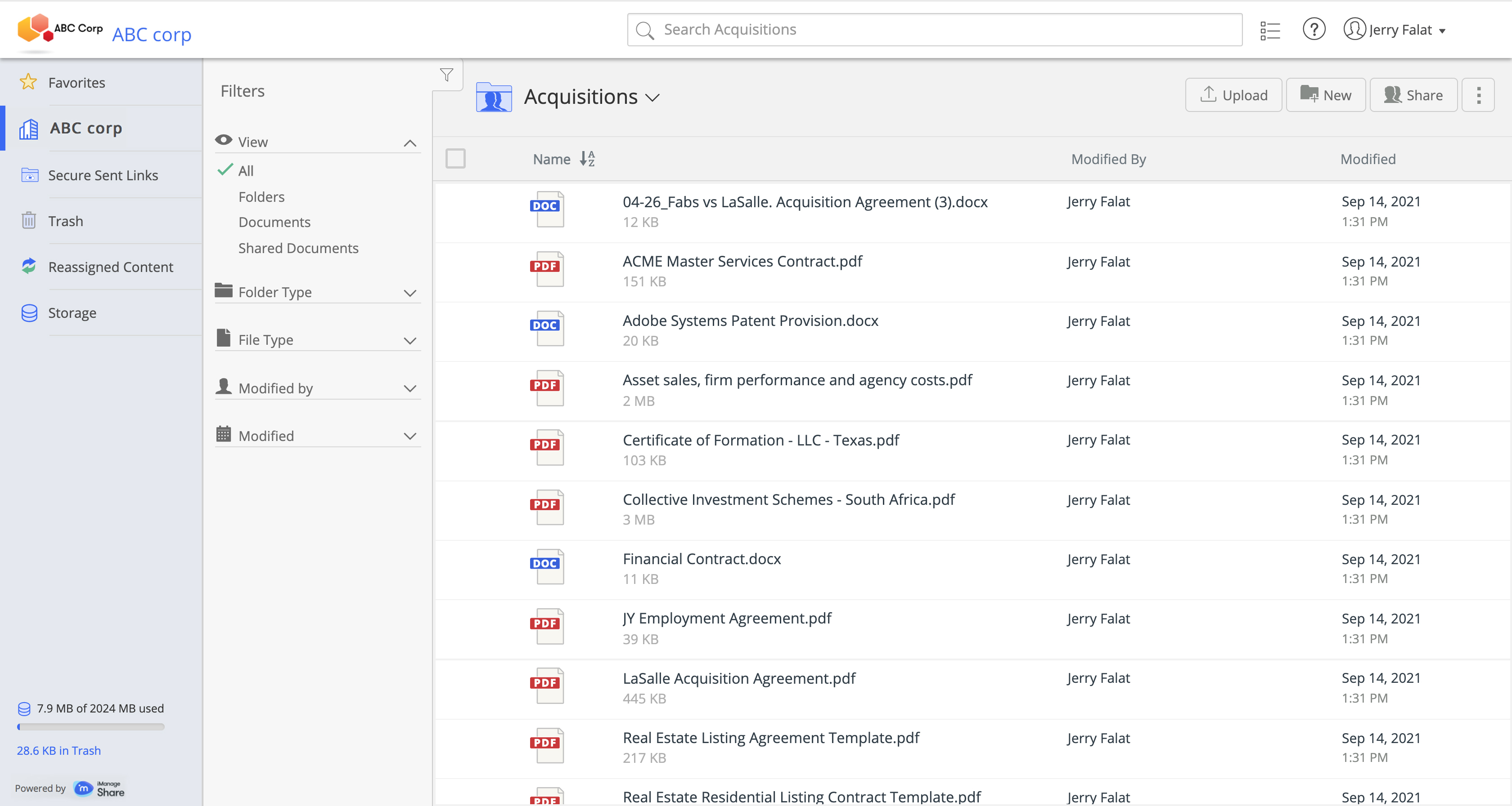 : Delete content from iManage Share Company View and move it to the Trash folder.