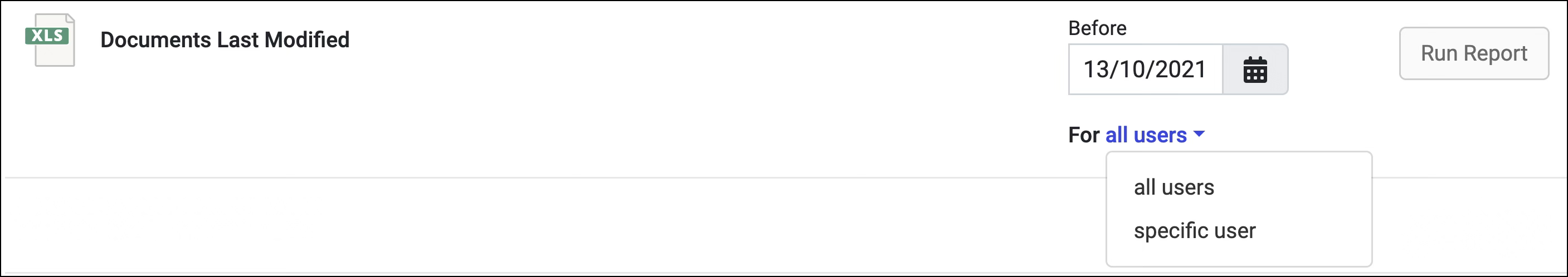 To manage Share document and version storage efficiently within the company, administrators can generate the Documents Last Modified report for a specific user or for all users in the company.