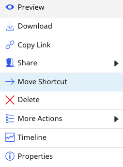 You can move single or multiple document shortcuts using right-click context menu or kebab menu.