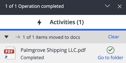 If you select multiple document shortcuts, the option is available on the toolbar.Select the target folder.