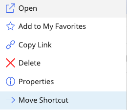 To move folder shortcuts using the the right-click context menu or kebab menu: