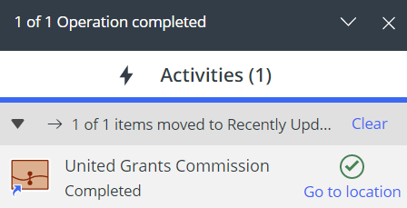 Selecting Go to location directs you to My Matters or the destination category inside them containing the workspace shortcut(s).