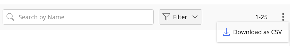 To download a report of the items sorted based on a particular filter, select the kebab menu next to the Filter drop-down list and then select Download as CSV.