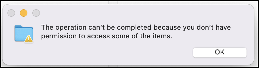 You can't move folders between workspaces from iManage Drive for Mac even though you have Read-Write or Full Access to the folder. If you try to move folders between workspaces, iManage Drive for Mac displays a message as shown in the following figure: