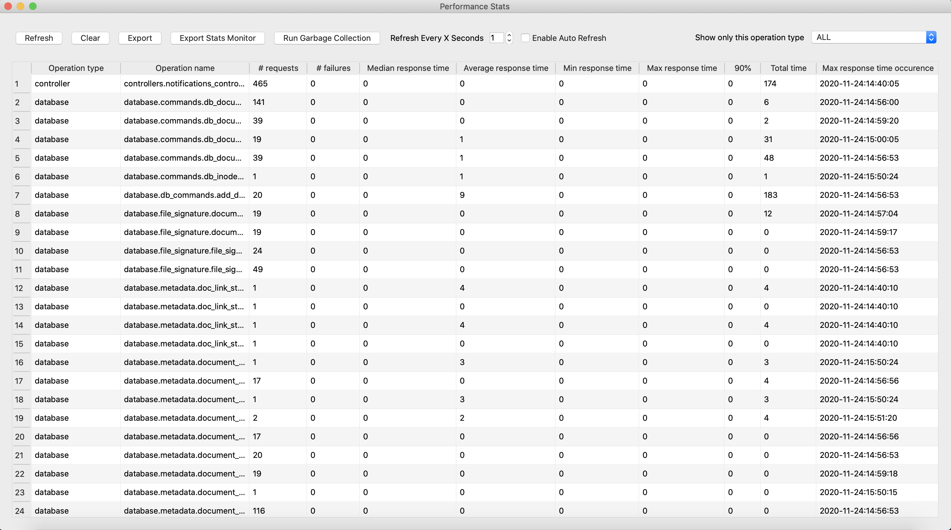 Select an option from the Show only this operation type list to narrow the results. By default, ALL stats are displayed.