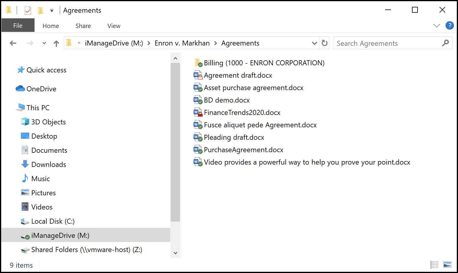 If you add (paste, download, or drag) or modify the files in your local drive, the same changes are reflected in iManage Work. Similarly, changes that other users make to the files in iManage Work are mirrored in the files in your local drive.