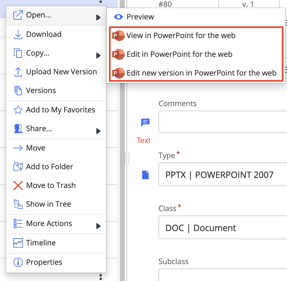 When your administrator enables Microsoft Office for the web functionality in your iManage Work environment, it is possible that you may not see the following menu options when you sign into iManage Work.