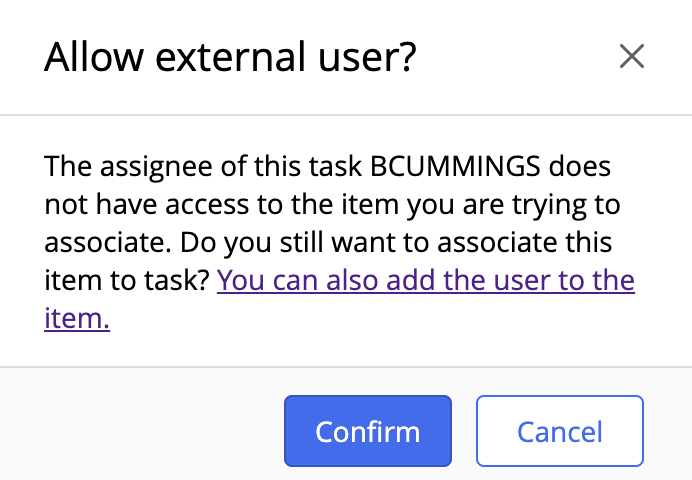 If the assignee of a task doesn't have access to the file or folder, the user is considered an external user for that item.