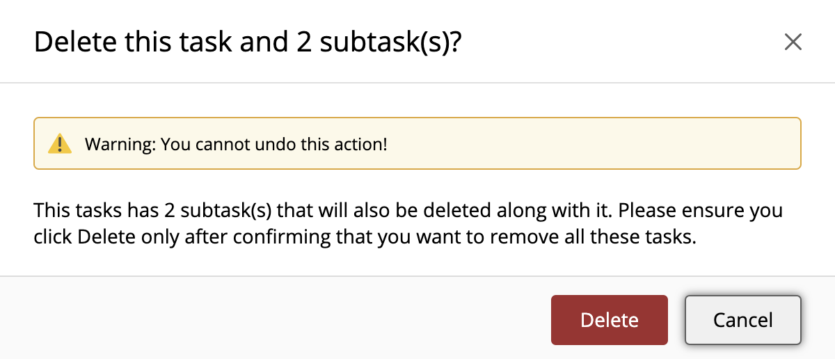 NOTE: Deleting a task deletes all of its subtasks, too.