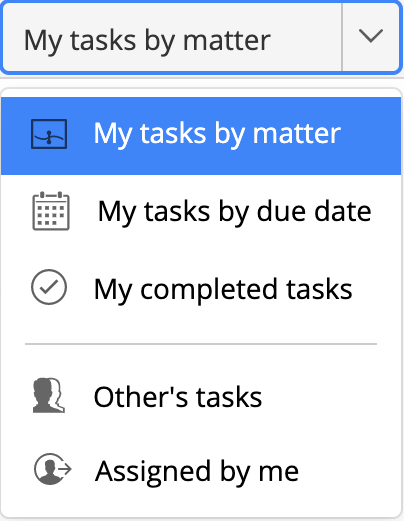 This default filter displays your tasks listed under each of the matters to which they belong.