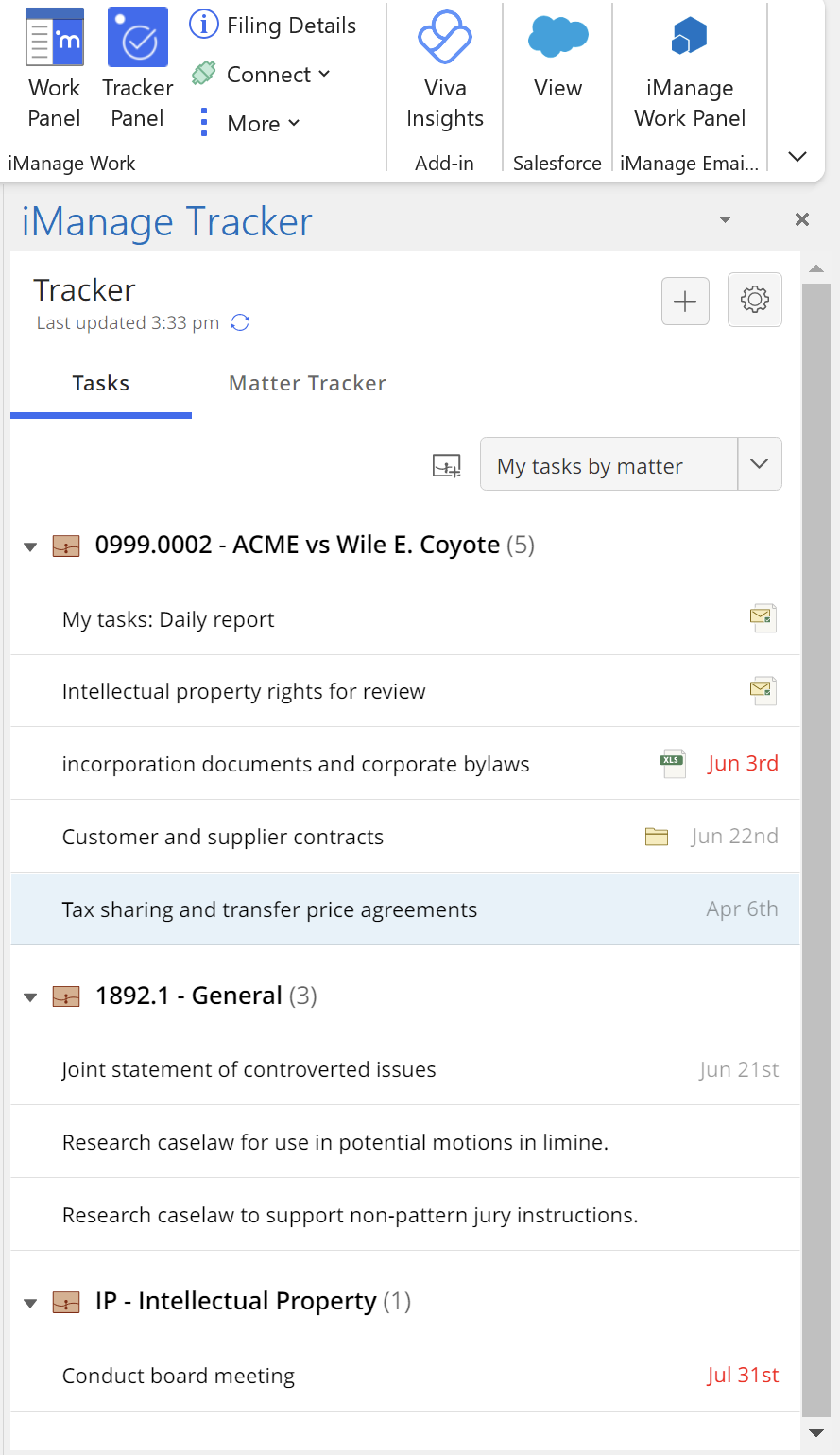 iManage Tracker panel shortcuts in Microsoft Outlook