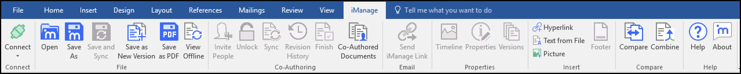 As an example, if you want to remove the Co-Authoring group from the iManage ribbon in Microsoft Word: