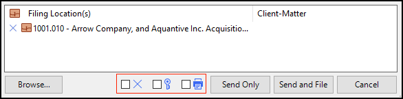 | Show or hide the Send and File button in the Select Filing Location dialog box. Example: |