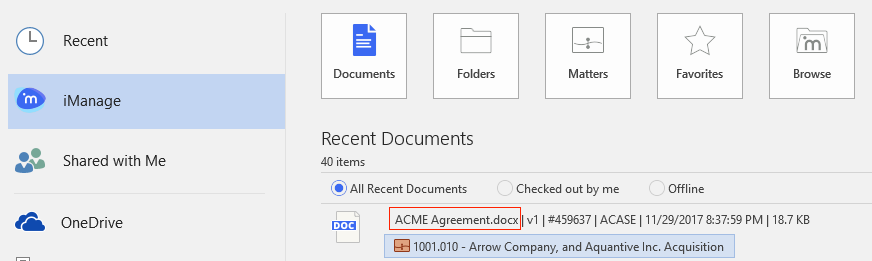 | iManage Work Desktop for Windows supports passive integration mode with Microsoft Office. If PassiveMode is set to |