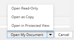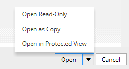 | Configures the on-screen text for the Open in Protected View action available within the iManage Work Open dialog. Example: |